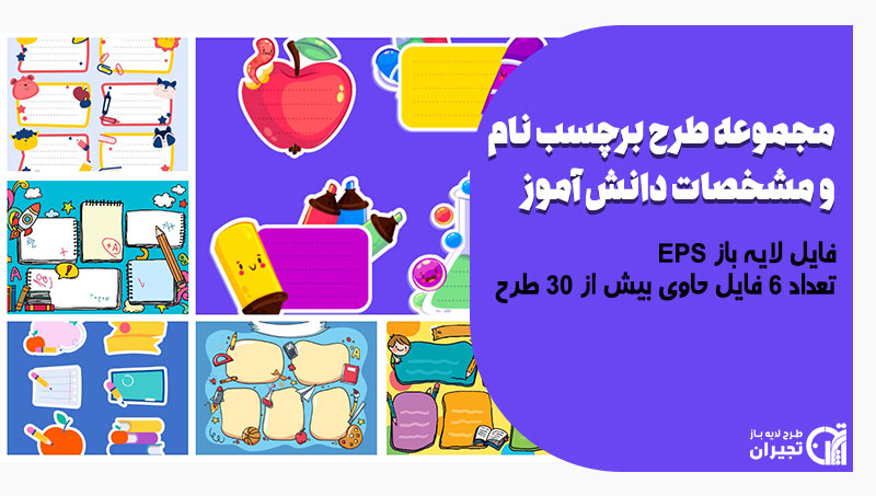 برچسب نام دانش آموز در 6 طرح وکتور با بیش از 30 طرح جذاب و متنوع بصورت فایل لایه باز طراحی شده که می‌توان آن‌ ها را روی کاغذ برچسبی چاپ و به راحتی استفاده کرد.