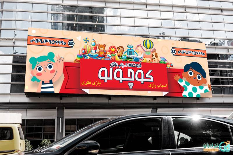 - ابعاد این بنر فروشگاه اسباب بازی 4 در 1.20 متراست.