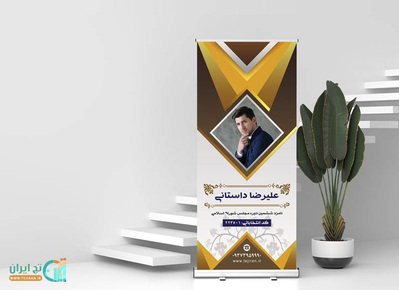 دانلود طرح لایه باز بنر انتخابات عمودی که به شکل زیبایی طراحی شده و آماده دانلود و استفاده می باشد شما میتوانید طرح و متن کاندیدای خود را با تصویر و متن پیش فرض جایگزین کرده و چاپ کنید
