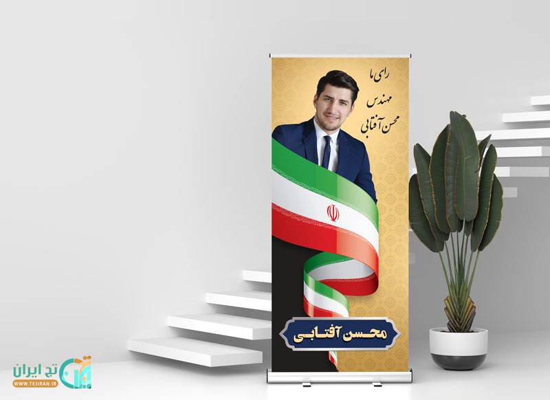 بنر انتخابات عمودی مناسب برای ستادهای انتخاباتی یا سالن ها و رویدادهای انتخاباتی می باشد که حتی میتوانید بر روی دیوار و .. نیز نصب کنید.