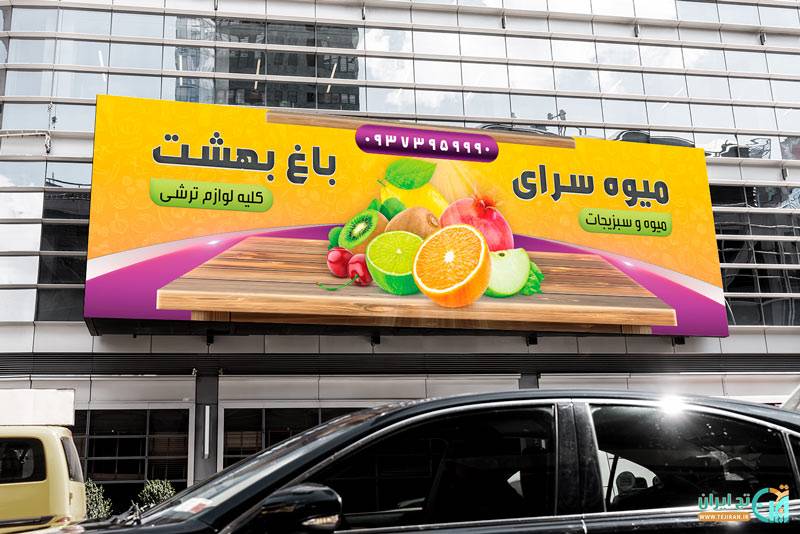 طرح زیر برای استفاده بعنوان تابلو سردر فروشگاه برای میوه فروشی ها و سبزی فروشی ها و سایر مشاغل مربوط قابل استفاده است