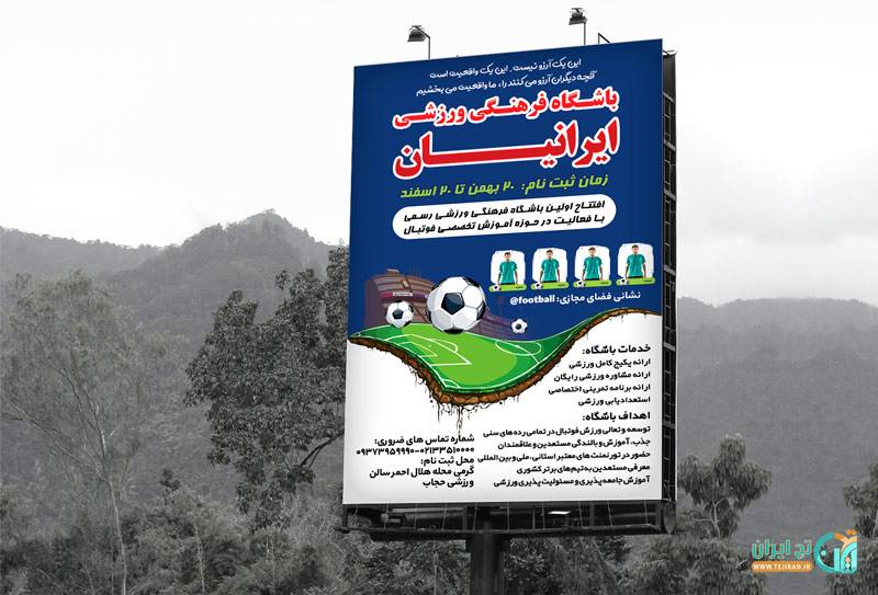 دانلود طرح لایه باز بنر مدرسه فوتبال که میتوانید بعنوان تبلیغات بنری روی بیلبورد و .. برای معرفی مدرسه فوتبال استفاده کنید