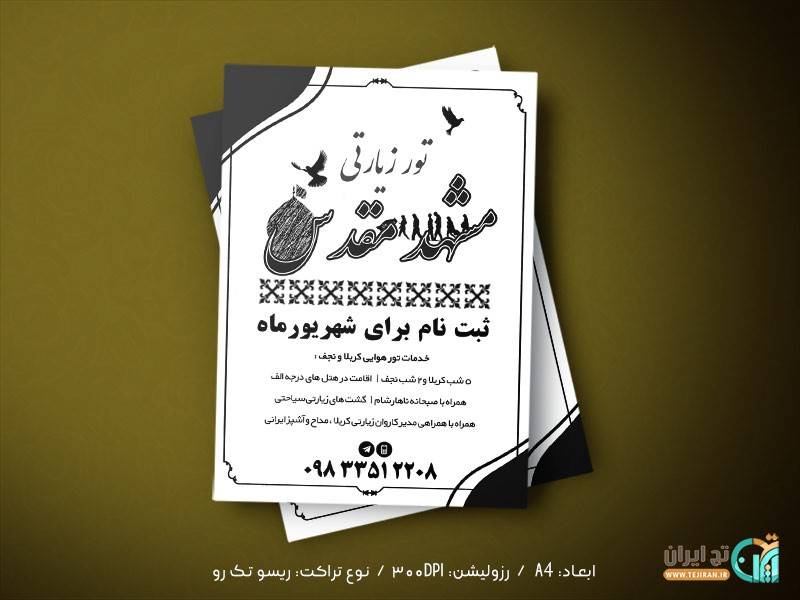 دانلود تراکت ریسو طرح لایه باز و قابل ادیت با برنامه فتوشاپ با موضوع کاروان زیارتی که میتوانید با کمک از این نرم افزار و باز کردن این فایل براحتی آن را ویرایش کرده و به دلخواه خود چاپ کرده و استفاده کنید