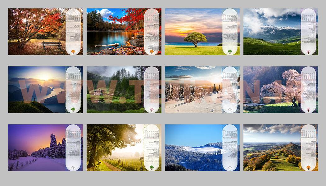 این تقویم بصورت کامل توسط تجیران طراحی شده است، اندازه تقویم های دسکتاپ 1680 در 1050 پیکسل است