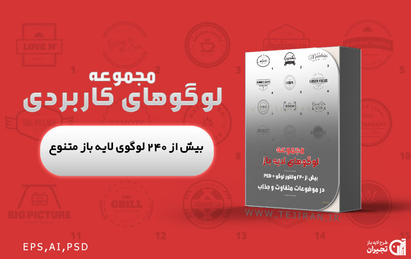 این پکیج حاوی 244 لوگو تمپلیت آماده با فرمت های مرسوم AI,EPS و PSD هست که کار شما را چند برابر راحت کرده ایم و در فرمت های مختلف میتوانید از آن استفاده کنید.