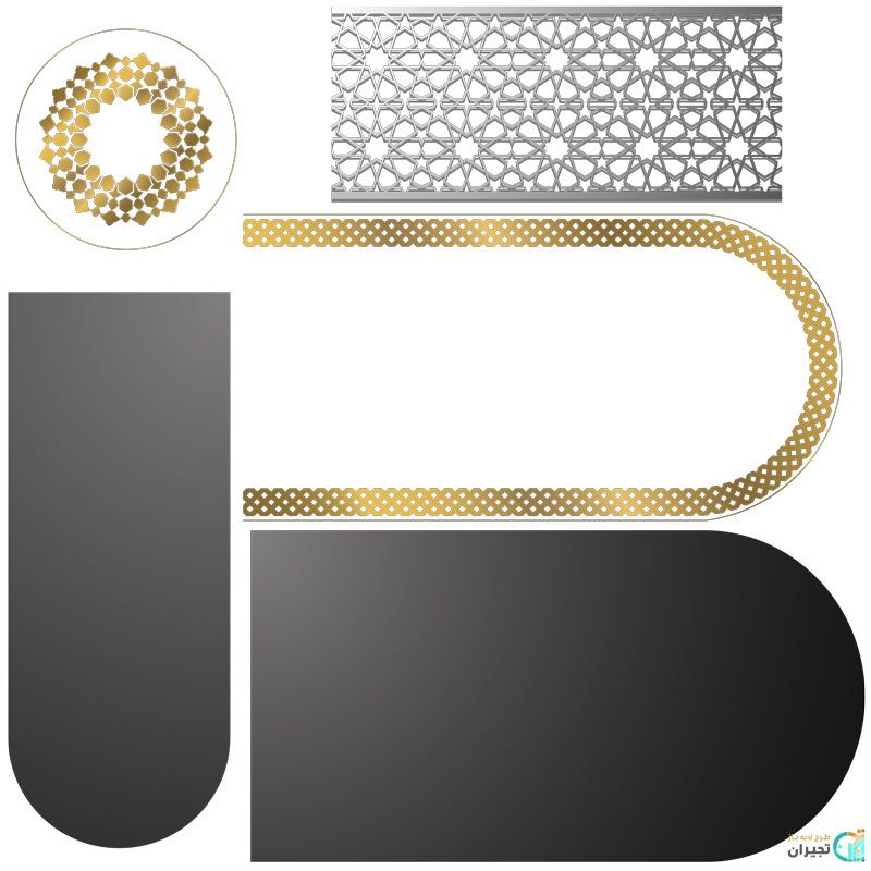 طرح اسلیمی لایه باز با طرح های مختلف و متنوع در رنگبندی طلایی، مشکی و نقره ای که شما می توانید بصورت لایه باز ویرایش کرده و یک وکتور مذهبی به سلیقه خود ایجاد و از آن استفاده کنید.