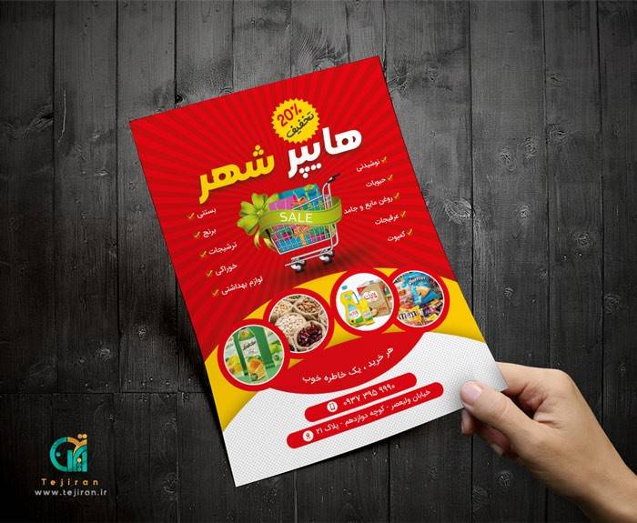 دانلود طرح تراکت هایپر مارکت برای سوپرمارکت های شهری که میتوانید به آسانی ویرایش کرده و چاپ و استفاده کنید.