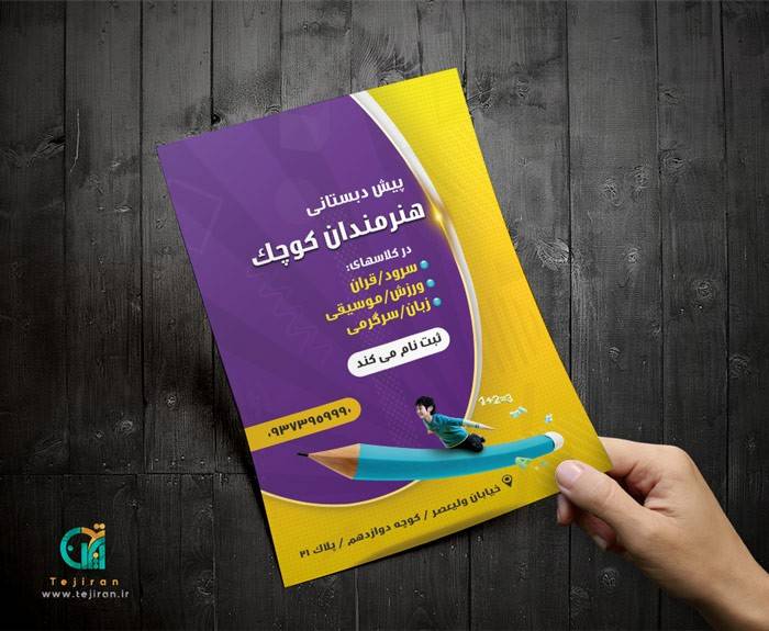 دانلود فایل فتوشاپ لایه باز تراکت برای پیش دبستانی یا مهدکودک که میتوانید با کمی ویرایش در رنگ و مشخصات، آن را چا کرده و استفاده کنید