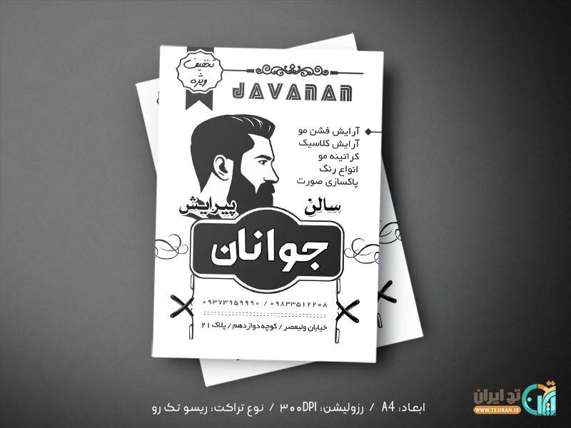 دانلود فایل لایه باز طرح ریسو برای آرایشگاه مردانه که بصورت جذابی طراحی و با مبلغ کم آماده دانلود می باشد این تراکت برای آرایشگاه ها مردانه کاربرد زیادی دارد