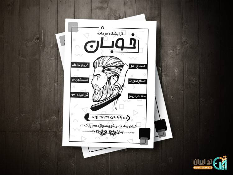 دانلود طرح ریسو تراکت لایه باز برای آرایشگاه مردانه با طرحی جذاب و تصاویر باکیفیت که میتوانید در امور مشاغل مربوط به آرایشگری مردانه استفاده کنید
