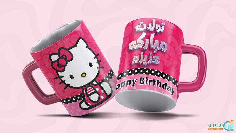 دانلود طرح ماگ کیتی که در رنگبندی سرخابی طراحی شده و با تصویر کارتونی کیتی می باشد که میتوانید دانلود و ویرایش کنید