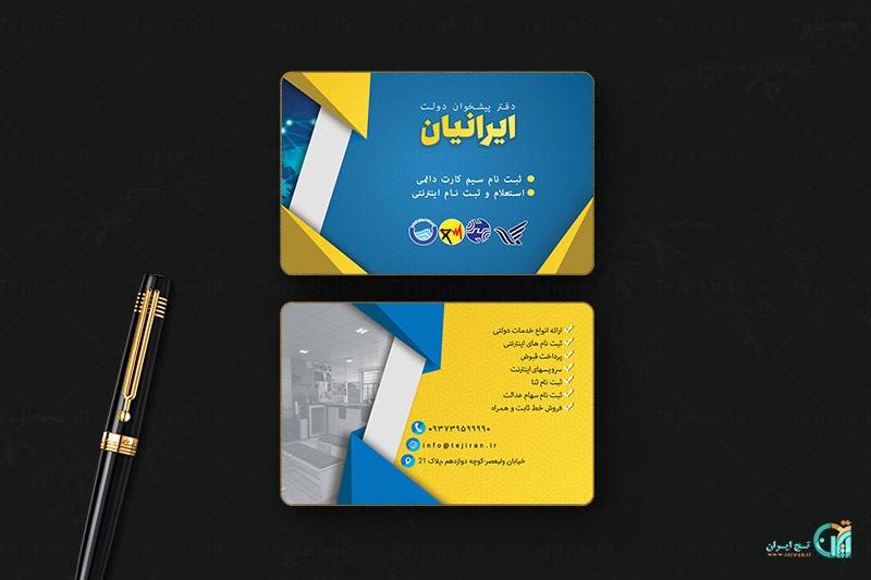 دانلود طرح کارت ویزیت دفتر پیشخوان لایه باز و قابل ویرایش یکی دیگر از کارت ویزیت های لایه باز برای دفتر پیشخوان دولتی که میتوانید از این کارت ویزیت در سایر مشاغل مربوطه استفاده کنید.