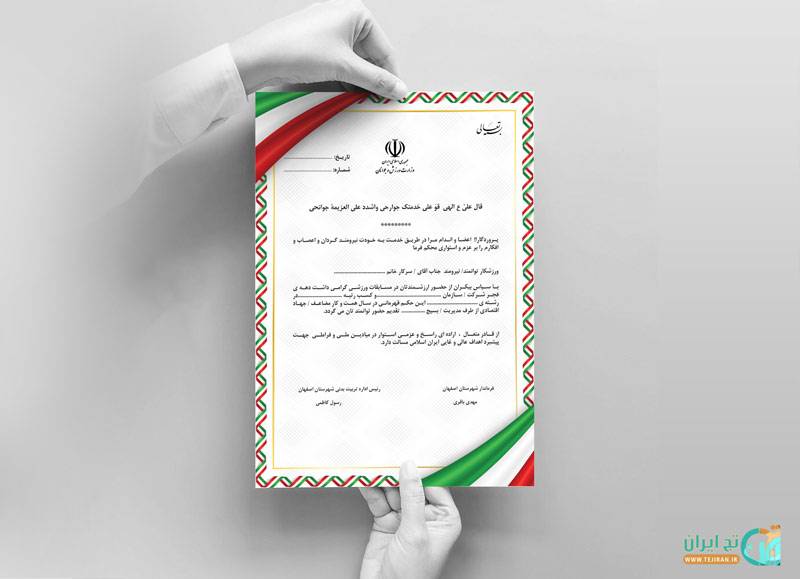 دانلود فایل لوح تقدیر لایه باز که میتوانید این طرح را دانلود کرده و متن را تغییر و بعنوان حکم قهرمانی یا لوحتقدیر استفاده کنید