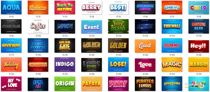 مجموعه تکست استایل سه بعدی لایه باز با کیفیت عالی که شما توسط آن ها می توانید افکت های فوق العاده زیبایی به متن و نوشته خود بدهید و زیبایی آن را دوچندان بکنید.