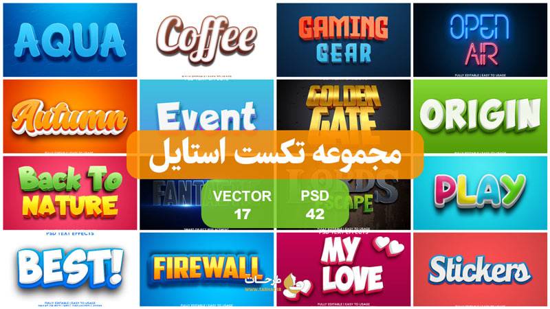 مجموعه تکست استایل سه بعدی لایه باز با کیفیت عالی که شما توسط آن ها می توانید افکت های فوق العاده زیبایی به متن و نوشته خود بدهید و زیبایی آن را دوچندان بکنید.