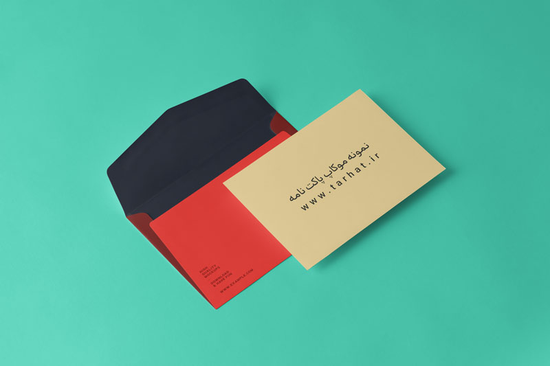 موکاپ پاکت و نامه بصورت یکجا و لایه باز که در این ماکاپ، پاکت به رنگ قرمز و کاغذ نامه به رنگ کرمی و با طراحی زیبا و جذاب می باشد که به دلیل لایه باز بودن، شما عزیزان می توانید رنگ آن ها را طبق سلیقه خود تغییر داده و رنگ و متن مورد نظر خود را جایگزین و اجرا کنید.