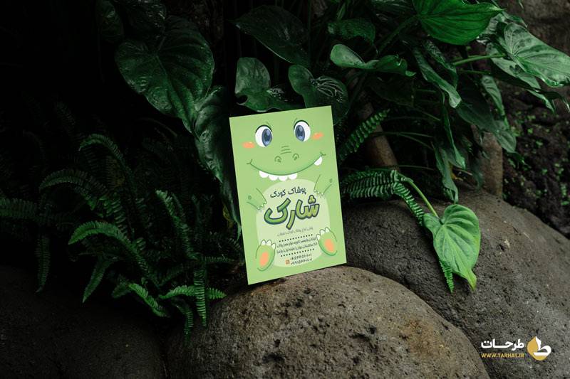 اندازه این موکاپ 3000 در 2000 پیکسل و رنگبندی آن سبز می باشد و دارای تصویر دایناسور عروسکی است.
