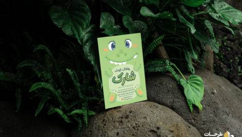 اندازه این موکاپ 3000 در 2000 پیکسل و رنگبندی آن سبز می باشد و دارای تصویر دایناسور عروسکی است.