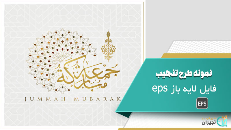 نمونه طرح تذهیب زیبا با ترکیبی از نقوش اسلیمی و خطاطی اسلامی، یک نمونه هنری چشم نواز و مناسب برای مناسبت های مذهبی بهویژه روز جمعه (جمعه مبارک) می باشد.