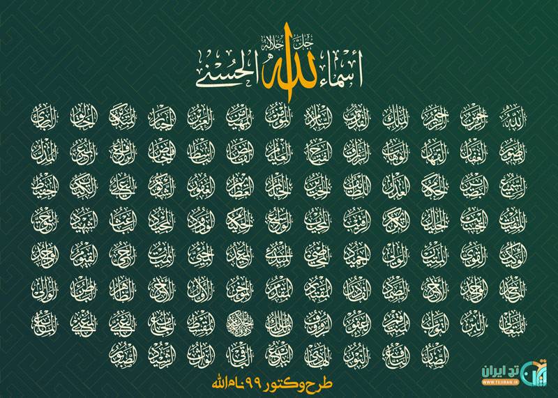 دانلود مجموعه 99 نام الله بصورت لایه باز – وکتور اسماء الحسنی که میتوانید در کارهای گرافیکی مذهبی از این طرح استفاده کنید