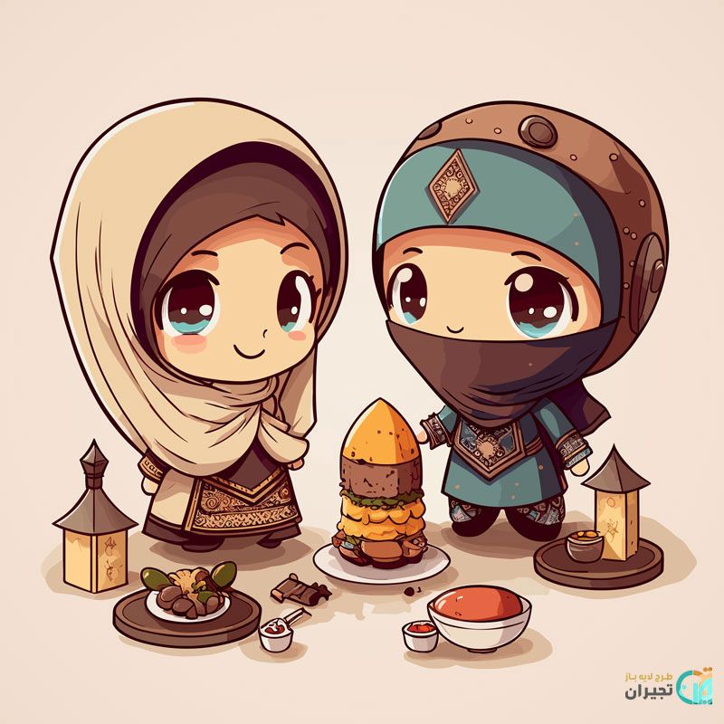 وکتور افطار با طرح و عکس دخترانی که در حال افطار کردن هستند و سفره افطار و غذاهای مخصوص افطار در این عکس موجود است.