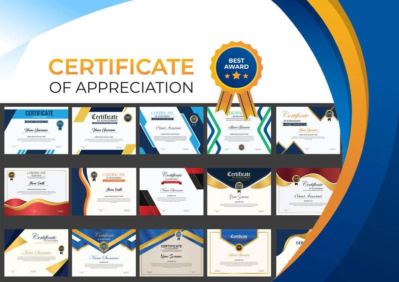 دانلود مجموعه وکتور گواهینامه برای استفاده طراحان که میتوانید با نرم افزار ایلاستریتور این طرح ها را کامل ویرایش کرده و طراحی کنید