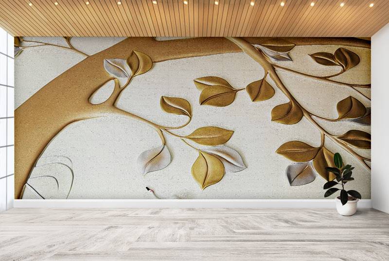 این طرح با ترکیب ظریف شاخه های هنری و برگهای طلایی برجسته، فضایی مجلل و طبیعی را خلق می کند و برای فضاهای پذیرایی، اتاق خواب یا محیط خانه یا فروشگاه مناسب است.