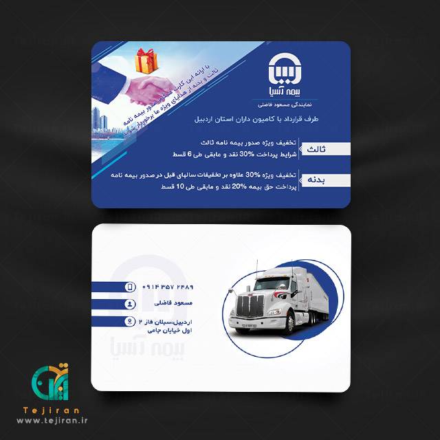 دانلود کارت ویزیت بیمه آسیا در دو رنگ آبی و سفید که بصورت لایه باز قابل دانلود و استفاده می باشد