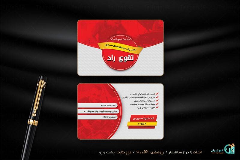 دانلود فایل لایه باز کارت ویزیت تعمیرگاه اتومبیل که میتوانید با تغییری این کارت را در مشاغل دیگر نیز استفاده کنید این طرح در دو رنگ قرمز و توسی خوشرنگ طراحی و آماده دانلود می باشد.