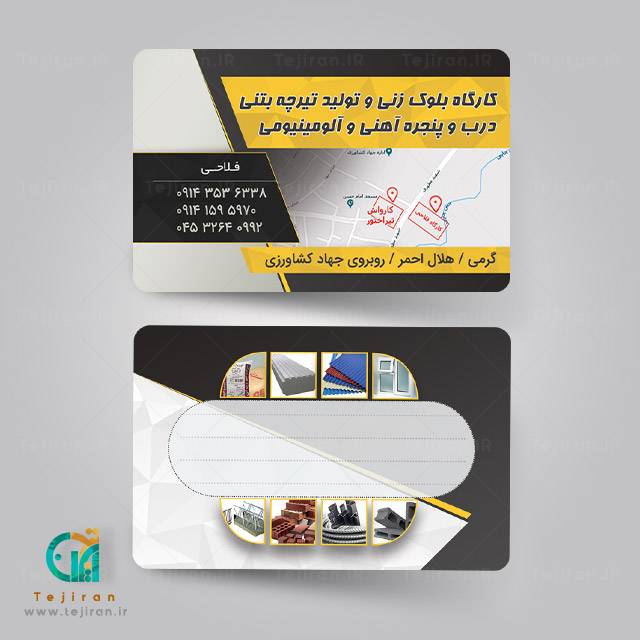نمونه کارت ویزیت لایه باز مصالح فروشی و تیرچه بتنی و فوم و … با طراحی جالب که هم اکنون با پرداخت اندکی مبلغ میتوانید آنرا دانلود و استفاده کنید.