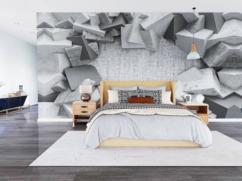 طرح دوم برای پوستر دیواری طراحی شده و با ترکیب بافت ها، اشکال هندسی و جلوه های سایه و نور، فضای دیوار را از حالت یکنواختی خارج کرده و تجربه بصری جذابی برای بیننده ایجاد می کند، به طوری که دیوار تبدیل به عنصر اصلی دکوراسیون می شود.
