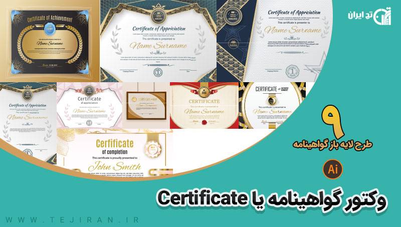 دانلود مجموعه 9 طرح گواهینامه بصورت وکتور که با دانلود این پک میتوانید تمامی فایل ها را در ایلاستریتور ویرایش کرده و استفاده کنید